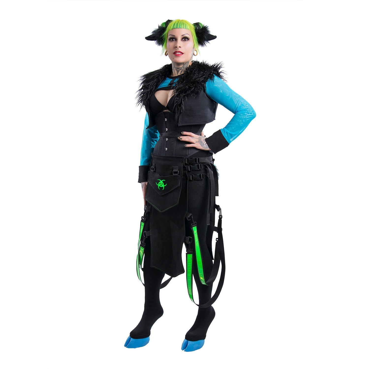 Unleash the borg inside in this customizable, futuristic futurepop frock! Adjustable side straps ensure a perfect fit every time to provide comfort and style idealized for the dance floor, cosplay, or to show off your robotic flair!